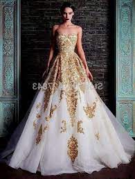 Floaty Dresses In Stock. There are so many blue color palettes and Navy and gold is an ideal wedding palette because its suitable for almost any season and theme. Gold wedding dress WE05 Gold top to a high-waisted traditional gown followed with royal blue velvet heavily embroidered with gold and antique gold work finished with four coloured borders.